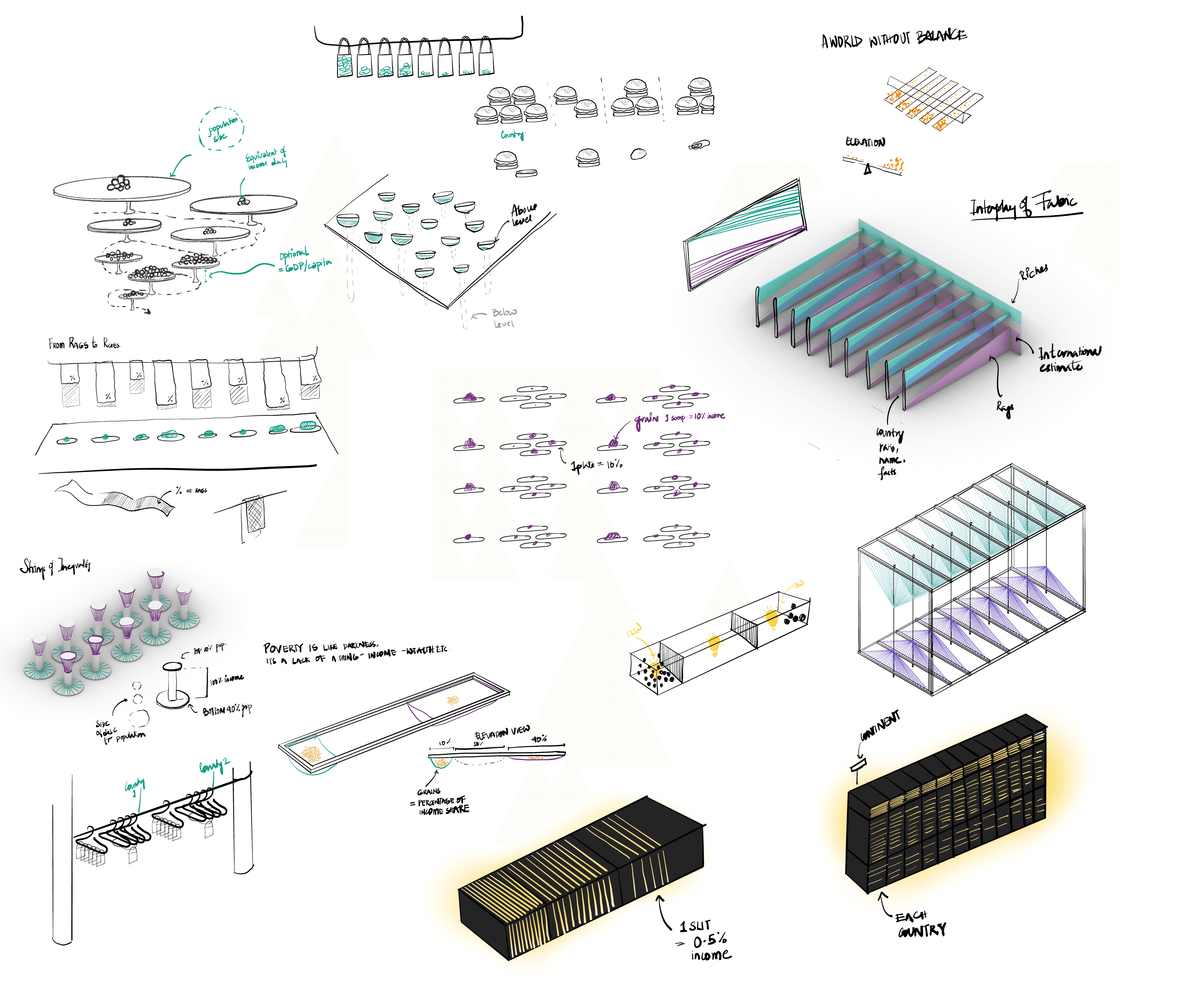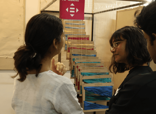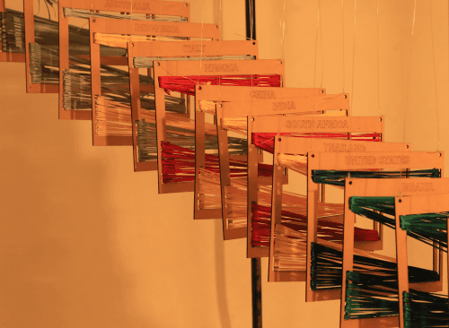 A tangible data visualization comparing national income disparity within countries.